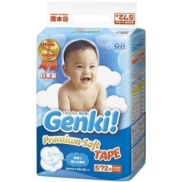 С мягкими детскими подгузниками Genki S кожа ребенка всегда будет сухой и здоровой. Они свободно пропускают воздух, надежно удерживают влагу внутри, а при максимальной наполненности полоска-индикатор меняет цвет. Широкая липучка и эластичная вставка на спинке обеспечивают комфортную посадку. Ножки обхватывают мягкие манжеты, что предотвращает протекание. Влага преобразуется в гель и остается внутри впитывающего слоя подгузника. Малыш не испытывает дискомфорта в высококачественных подгузниках Генки, остается активным и бодрым весь день!