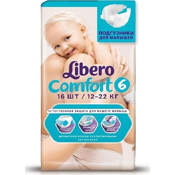 Детские подгузники Libero Comfort 6 Extra Large, 12-22 кг, 16 штук