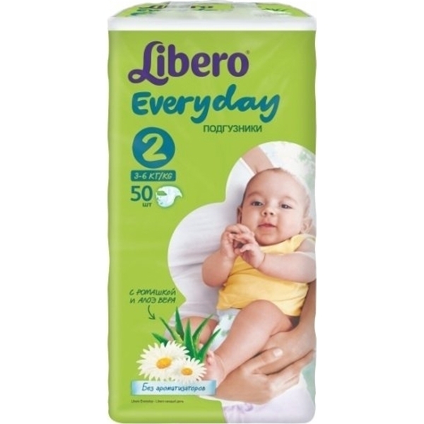 Детские подгузники Libero Everyday с ромашкой 2 Mini, 3-6 кг, 50 штук