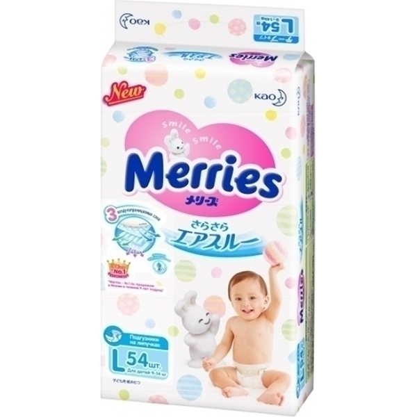 Многие родители отдают предпочтение супермягким «дышащим» детским подгузникам Merries L. Основные достоинства продукции марки — простота в использовании, надежная защита от протекания, моментальное впитывание влаги и ее равномерное распределение внутри. Инновационная технология трех дышащих слоев беспрепятственно выводит наружу влажные пары, оставляя попку сухой и здоровой.