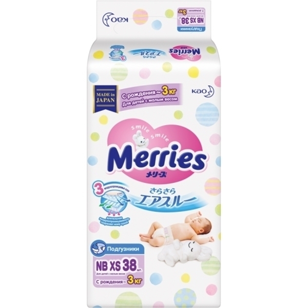 Кожа новорожденного требует особого внимания родителей. Производитель детских подгузников Merries NB XS для детей с весом до 3 кг гарантирует отличную эластичность и воздухопроницаемость изделий, 100% защиту от раздражений и опрелостей на коже, удобный для мамы процесс надевания и замены подгузника. Внутренняя волнистая поверхность значительно уменьшает площадь контактируемого с кожей материала, моментально пропускает влагу внутрь для превращения в гель. Подгузник Меррис защитит кроху и в случае жидкого стула.