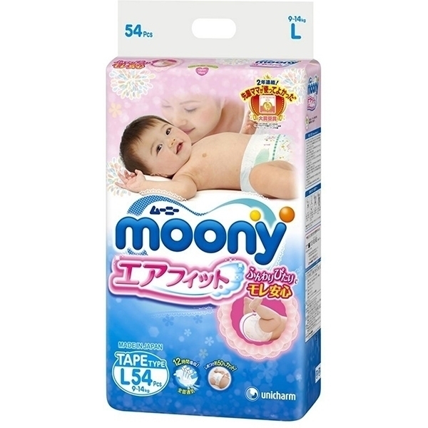 Детские подгузники Moony L, 9-14 кг, 54 штуки