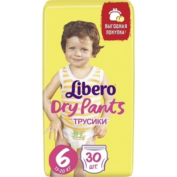 Одеть на подросшего малыша подгузник — непростая задача. Детские трусики Libero Dry Pants 6 Extra large значительно облегчат родителям ежедневный уход за крохой. Изделие с широкой эластичной резинкой по талии легко снимается и надевается, моментально впитывает жидкость, надежно защищает от протекания, дополнено растительными экстрактами для смягчения кожи.
