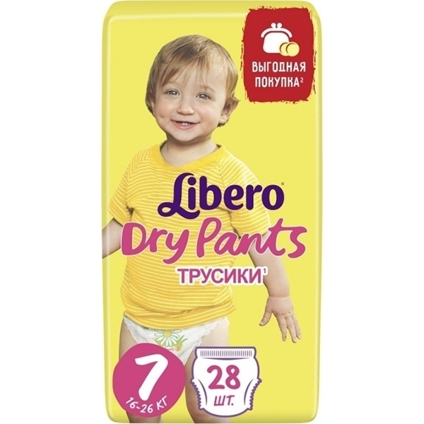 Ситуации, когда подгузник может понадобиться уже взрослому малышу, нередки. Советуем обратить внимание на мягкие детские трусики Libero Dry Pants 7 Extra large plus. Трусики отличаются комфортной посадкой, не провисают между ног, отлично справляются со своей главной задачей — впитыванием жидкости. Для производства трусиков используются гипоаллергенные «дышащие» материалы, заботливо оберегающие кожу ребенка от неприятностей.