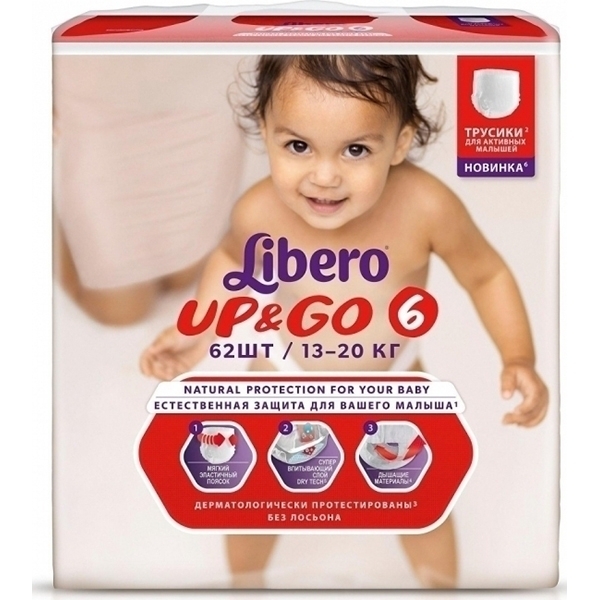 Ежедневный уход за непоседой — детские трусики Libero Up&Go 6 Extra large (Либеро Ап Энд Гоу 6 Экстра Лардж)