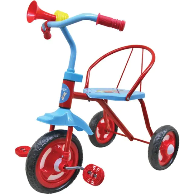 Если ваш малыш просит подарить ему велосипед, обратите внимание на красочную модель, выполненную в стиле легендарного мультфильма. Оснащенный широким сиденьем с металлической спинкой, детский трехколесный велосипед 1Toy (1 Той) Ну, Погоди! Т57648 позволит ребенку получить максимум удовольствия от поездки. Педали на переднем колесе не скользят под ножками и легко крутятся, а ребристые рукоятки на руле обеспечивают удобное управление. Если вам пришелся по душе детский трехколесный велосипед 1Toy (1 Той) Ну, Погоди! Т57648, то купить его прямо сейчас можно по заманчивой цене. Дополнительно транспортное средство оснащено ярким клаксоном.