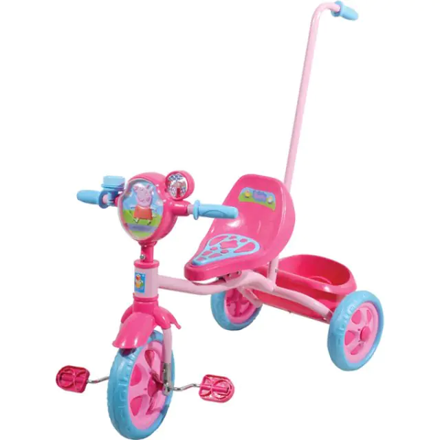 Специально для маленьких принцесс, которые собираются отправиться в свои увлекательные путешествия, создана яркая модель, оформленная в стиле популярного мультфильма. Симпатичный трехколесный велосипед 1Toy (1Той) Peppa с ручкой Т57572 оснащен удобным массажным сиденьем и высокой спинкой, обеспечивающей дополнительный комфорт. Резиновые колеса обеспечивают более мягкий ход, позволяя в полной мере насладиться семейными поездками. Если ваша дочка мечтает о чудесном подарке, купите для нее детский трехколесный велосипед 1Toy (1Той) Peppa с ручкой за доступную цену. Сзади транспортное средство оснащено багажной корзиной, в которой поместится любимая кукла вашей малышки и другие приятные сердцу безделушки.