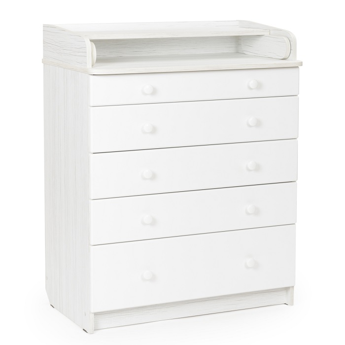 Bebizaro Modern New – качественное и удобное изделие, снабженное органайзером. Комод стал еще более вместительным, удобным и интересным. В этой модели пять ящиков разных размеров, в которые можно положить совершенно разные вещи. Верхний ящик снабжен разделителем, превращающим ящик в органайзер. У всех ящиков шариковые направляющие, которые позволяют бесшумно открывать и закрывать комод.