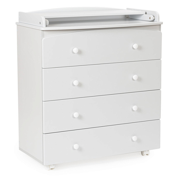 Пеленальный комод Regency Four – это удобная и практичная мебель с четырьмя выдвижными ящиками и пеленальной поверхностью для маленького ребенка. Комод станет незаменимым помощником для мамы в уходе за ребенком. Еще один плюс комода — его мобильность. Он оснащен пластмассовыми колесами с резиновыми накладками и стопором.