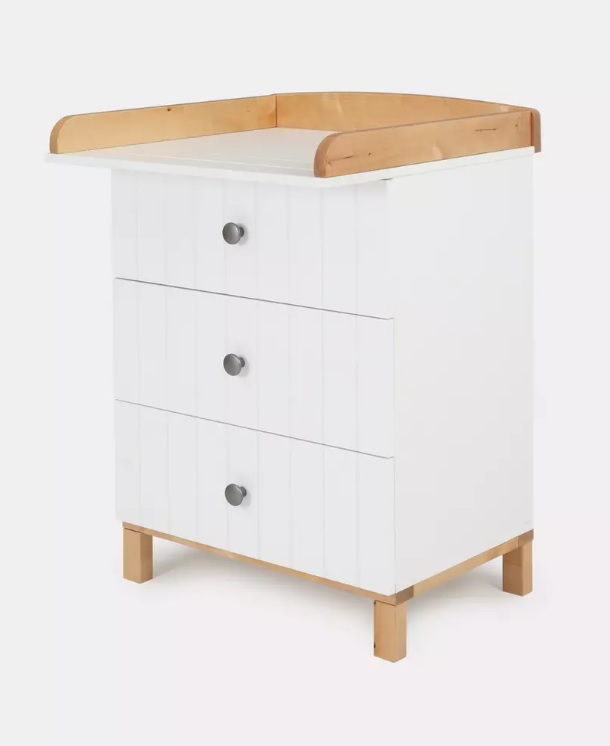 Комодик оборудован бортиком, который формирует пеленальную поверхность. Когда ребенок выйдет из младенческого возраста, бортик можно просто снять и превратить пеленальный комод в классический. Фасады мебель изготовлены из качественного экологически чистого материала, обработан гипоаллергенными лакокрасочными материалами.