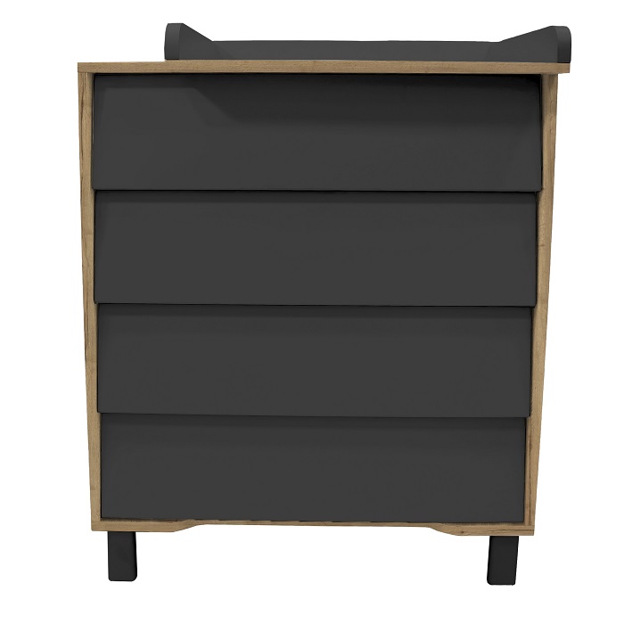 Элегантный пеленальный комод сочетает современный дизайн и практичность для молодых родителей. Четыре просторных ящика на шариковых направляющих обеспечивают плавное и бесшумное открывание, выдерживая значительную нагрузку. Уникальные наклонные фасады без ручек не только придают комоду стильный вид, но и гарантируют безопасность для малыша, упрощая использование.