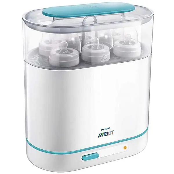 Электрический стерилизатор Philips Avent SCF284/03 с функцией регулировки размера – компактное устройство, разработанное специально для упрощения процесса стерилизации детских бутылочек, молокоотсосов и посуды для более взрослых малышей. Модель Филипс Авент SCF284/03 выполнена из качественного термостойкого пластика, не содержащего опасные для здоровья добавки, безопасна в использовании и дополнена функцией автоматического отключения. Время стерилизации занимает всего лишь 6 минут, что позволяет значительно снизить затраты на электроэнергию. Обработка паром при помощи Philips Avent SCF284/03 эффективно уничтожает все болезнетворные микробы, а значит, избавляет родителей от лишних переживаний за здоровье малыша.
