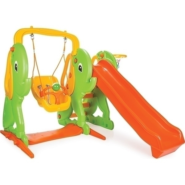 Яркий дизайн этой площадки привлечет внимание вашего ребенка, а ее многофункциональность обеспечит детворе активное и веселое времяпровождение. Здесь в распоряжении маленького непоседы окажутся горка и качели с ремнями безопасности. Качели имеют надежное крепление и небольшую амплитуду раскачивания, поэтому подходят и для самых маленьких деток. Горка-комплекс Pilsan Слон оснащена еще и баскетбольным кольцом, с которым малыш сможет совершенствовать свои навыки по бросанию мяча. В такой зоне развлечений детям не придется скучать, ведь их ждет много веселых и увлекательных забав.