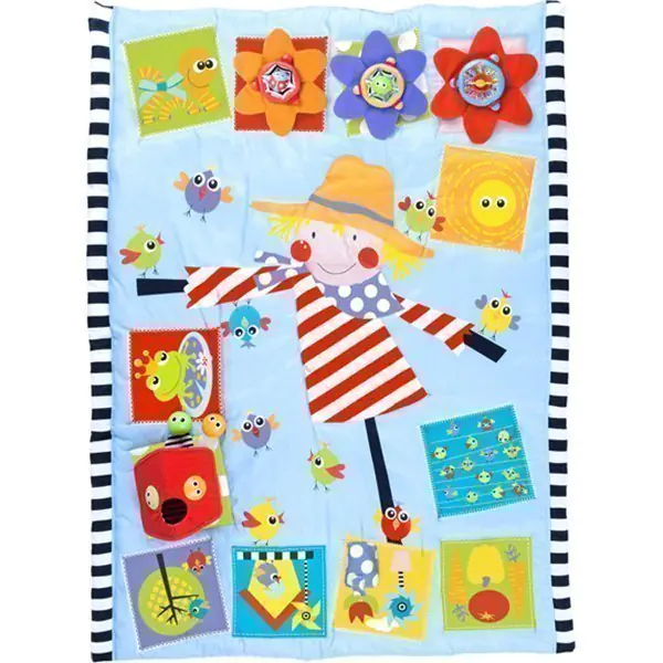 Игровой активный коврик Yookidoo создан для того, чтобы малыш с удовольствием учился ползти с места на место, садиться или переворачиваться. Коврик Yookidoo выполнен из приятной на ощупь ткани и дополнен изнутри мягкой прослойкой. Поверхность коврика оформлена в виде большой красочной аппликации с изображением симпатичных зверюшек, цветочков, фруктов и милого чучела в центре. Игровой (активный) коврик Юкиду удобен для хранения и переноски.