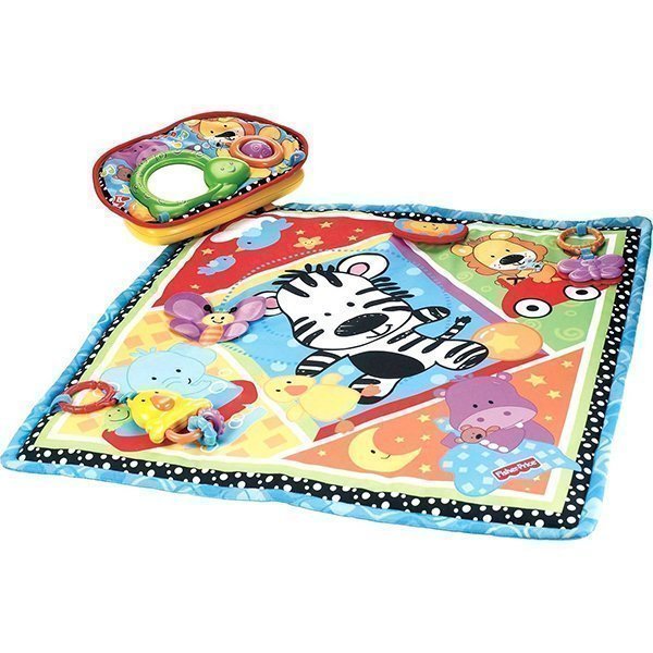 Игровой коврик Fisher-Price Блестящие Основы FP V3711 представляет собой мягкое одеяльце с нежным покрытием, дополненное съемными игрушками. Здесь любознательного малыша ждет бабочка-грызунок, погремушка-уточка, двухцветный вращающийся шарик и безопасное зеркальце. Коврик для игр Fisher-Price воспроизводит четыре звуковых эффекта и восемь детских песенок. После удаления всех игровых элементов изделие можно использовать в качестве обычного одеяльца. Игровой коврик Фишер Прайс Блестящие Основы FP V3711 выполнен из разнофактурных материалов, которые издают различные звуки.