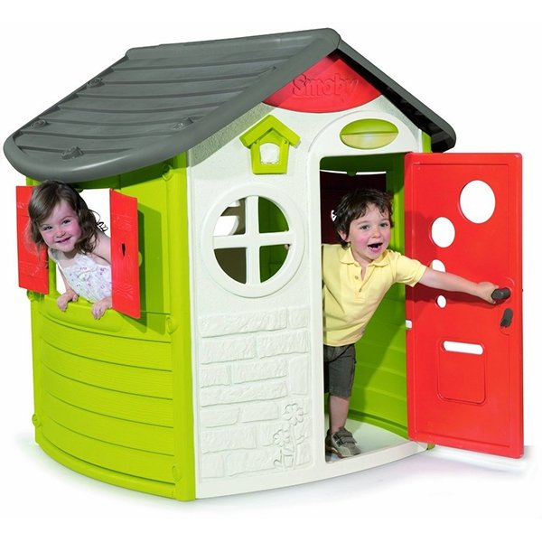 Массивная крыша, стильные стены с кирпичной кладкой и изображениями цветов, окошки разной формы и симпатичные ставни, украшенные резными сердечками – эта постройка станет любым местом игр и встреч малыша с друзьями. Созданный французскими дизайнерами, игровой домик Smoby Jura имеет продуманное внутреннее пространство с оптимальной площадью. Главная дверь дополнена почтовым ящиком и ключом. С другой стороны находится маленькая калитка. Пластиковый домик Джура станет для ребенка укромным, уютным гнездышком, в котором можно спрятаться от посторонних глаз и предаться детским грезам.