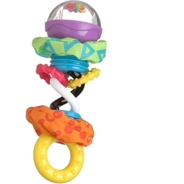 Оригинальное изделие обязательно привлечет внимание карапуза и подарит ему много новых впечатлений. Игрушка-погремушка Playgro Забавные Шарики сделана из безопасных материалов: текстиля и пластика высокого качества. Она представляет собой гантельку, на которой расположено рельефное колечко и прозрачный шар с цветными бусинками. Середина игрушки сделана в виде двух контрастных спиралей. Помимо этого, она имеет две вставки из шуршащей ткани. Погремушка с яркими деталями и забавными формами позабавит малютку. Она будет стимулировать визуальное восприятие малыша, развивать его слух и мелкую моторику ручек.