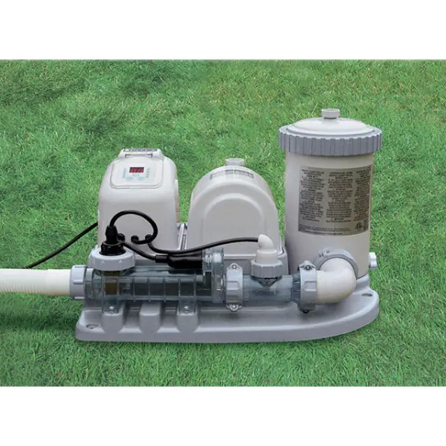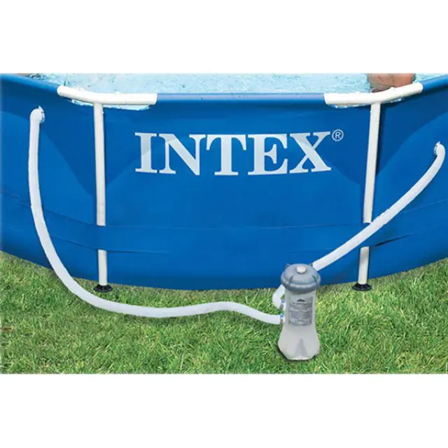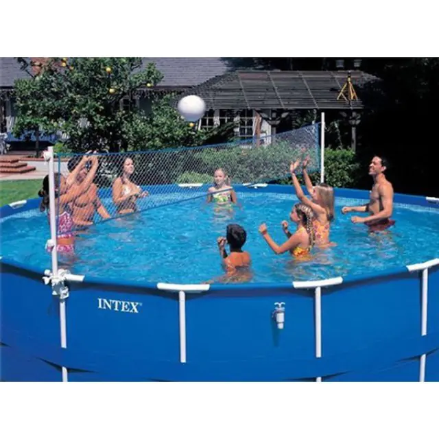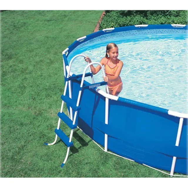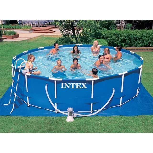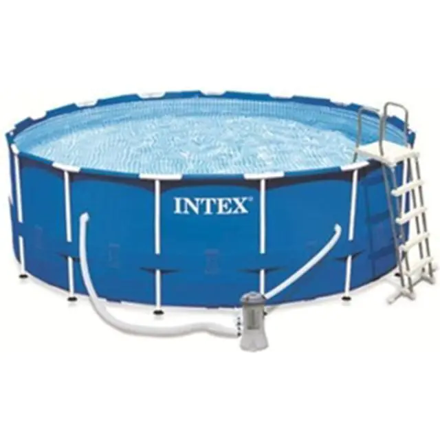 Если вы желаете порадовать свою семью большим личным водоемом, в котором можно было бы искупаться в летний зной, тогда эта модель создана для вас. Металлический каркас каркасного семейного бассейна Intex (Интекс) круглого с лестницей и насосом-фильтром дополнен чашей из плотного трехслойного ПВХ. Между двумя слоями пленки внедрен слой стекловолоконной сетки, который защищает поверхность изделия от повреждений. Купить каркасный семейный бассейн Intex (Интекс) круглый с лестницей и насосом-фильтром вы можете в интернет-магазине koliaski-krovatki.ru по выгодной цене. Изделие оснащено эффективной системой фильтрации, сохраняющей воду в чистом виде.