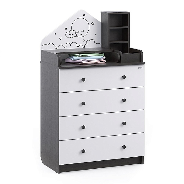 Комод-трансформер Атон Сириус ALF 804 ЛДСП — оригинальная мебель, которая сделает детскую комнату или уголок в доме удобным и уютным. Комод способен превращаться в детский столик. Есть пеленальный столик, который в разложенном виде превращается в удобное место для гигиенических процедур. Когда малыш подрастет, пеленальный столик без труда демонтируется. Для средств гигиены предусмотрены удобные небольшие полочки. У мамы всегда все будет под рукой. Дизайн комода классический, украшенный интересным «домиком», добавляющим мебели оригинальности.