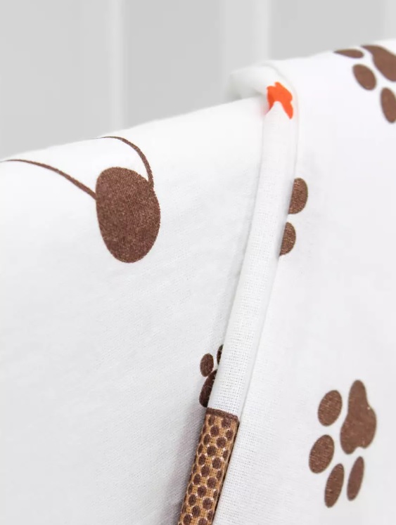 Этот комплект постельного белья для новорожденного состоит из трех предметов. В этой серии представлены пододеяльники с принтами дизайнерского типа в двух вариантах — с веселыми собачками и их следами на тыльной стороне, а также с царскими коронами и звездочками с другой стороны.