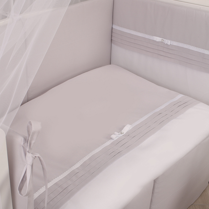 КПБ Crystal можно пользоваться в кроватках со спальными местами — 120x60 см и 125x65 см. Чехлы с бортиков снимаются, застегиваются на молнию, стираются. Набор комплектуется легким гипоаллергенным одеялом.