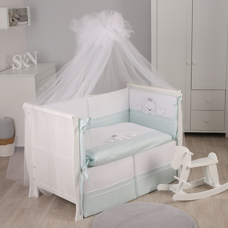 Бортики имеют съемные чехлы, чтобы их удобно было снимать и стирать. Простыня универсальная, на резиночке, подойдет для овальных и прямоугольных матрасов длиной 120 и 125 см. Одеяло и подушка сделаны из мягкой, гипоаллергенной ткани с оптимальной терморегуляцией. Все уложено в красивую подарочную упаковку.