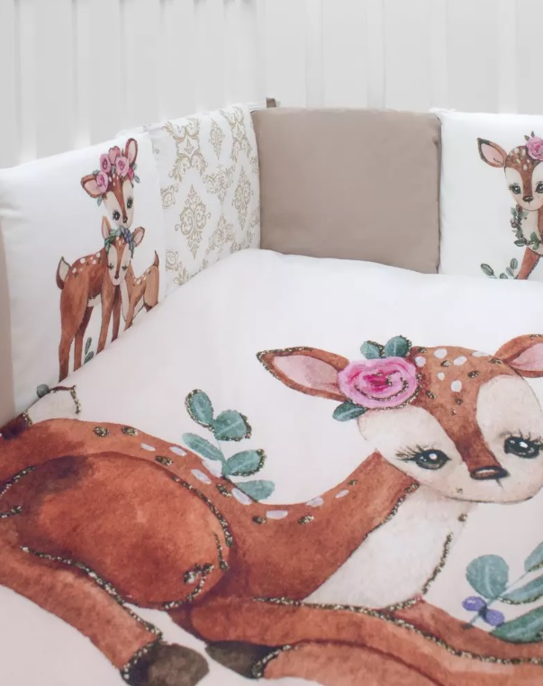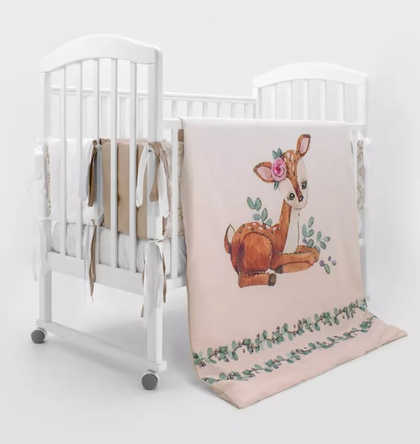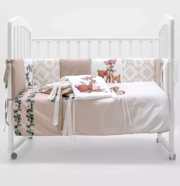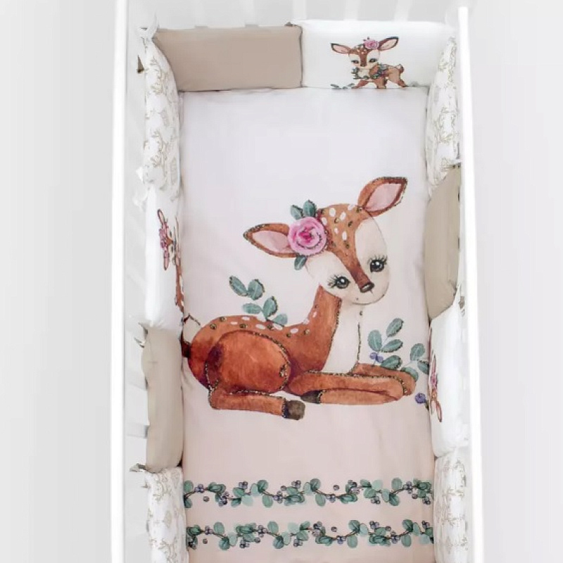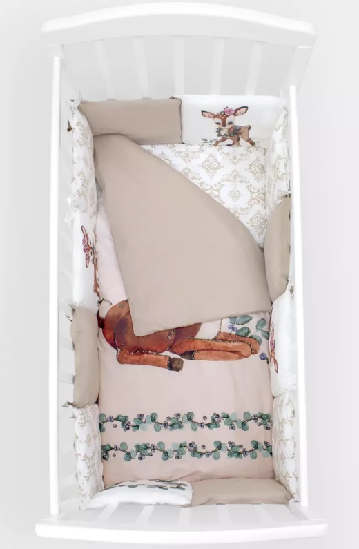 Комплект «Крошка Олененок» безопасный за счет использования натурального экологичного материала. Цвета разработаны с психологом, чтобы ребенку было комфортно и легче осваиваться в новом для себя мире. Последние разработки в области нанесения изображений позволяют длительное время использовать белье, которое будет оставаться в первоначальном виде.