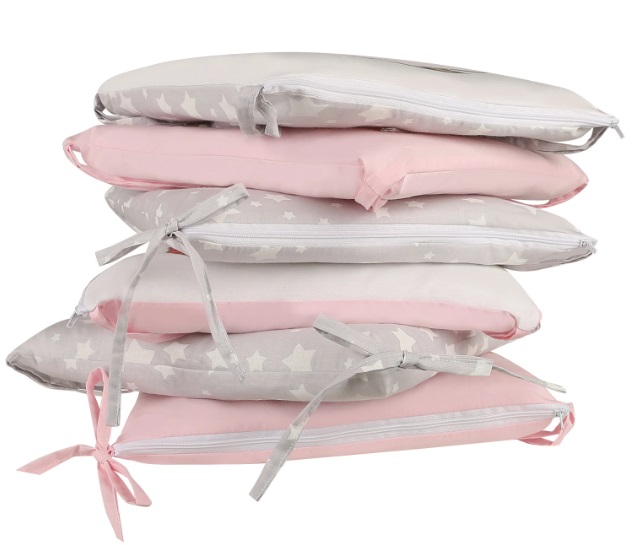 Защитный бортик состоит из 12 подушечек размером 30х30 см с чехлами на молнии, которые легко снимаются для стирки, упрощая уход за комплектом. Все элементы выполнены из поплина с яркой цифровой печатью, что гарантирует долговечность и привлекательный внешний вид. Этот комплект сочетает функциональность и стиль.