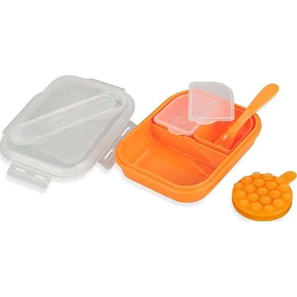 Контейнеры с крышками, ложкой и подставкой Philips Avent SCF724/00 пригодятся для приема пищи ребенком на улице, даче или за городом. В большую форму легко положить разные блюда, не смешивая их, поскольку в контейнере с крышками, ложкой и подставкой Филипс Авент есть 2 дополнительные закрывающиеся емкости. Ложка не потеряется, так как удобно вставляется в крышку, плотно фиксируясь. Присоски на подставке для еды Philips Avent не позволят малышу его опрокинуть.