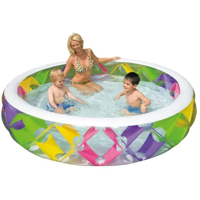 В летние теплые дни куда приятнее отдыхать на природе, чем находиться в душной городской квартире. Новинка – надувной прозрачный бассейн Intex (Интекс) с цветными вставками и надувным дном c56494 позволит полежать в освежающей водичке в компании друзей и поиграть в водные игры с детьми. Большой внутренний объем конструкции предоставляет возможность находиться в нем одновременно нескольким людям, а ее оригинальный дизайн создает удивительное ощущение невесомости. Купить по выгодной цене надувной прозрачный бассейн Intex (Интекс) с цветными вставками и надувным дном c56494 у вас есть возможность прямо сейчас. Благодаря прочным материалам он будет радовать вас не одно лето.