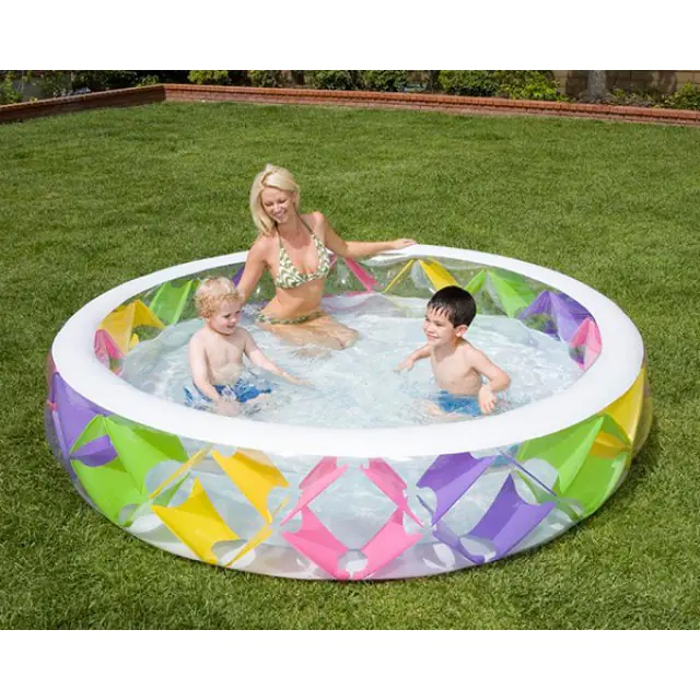 Надувной прозрачный бассейн Intex Интекс с цветными вставками и надувным дном c56494