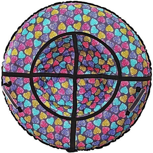 Высокопрочные надувные санки-тюбинг RT Сердечки на сером для современных родителей и их детей