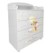Мебель российского производства под маркой знаменитого бренда Indigo. Из-готовлен из ламинированной ДСП, состоит из четырех вместительных выдвижных ящиков. В комплект входит удобная пеленальная доска. Ящики безопасные, ходят на шариковых направляющих. Выполнен в белом цвете с изображениями милых сказочных животных. Для удобства родителей оборудован мобильными колесика-ми с фиксацией.