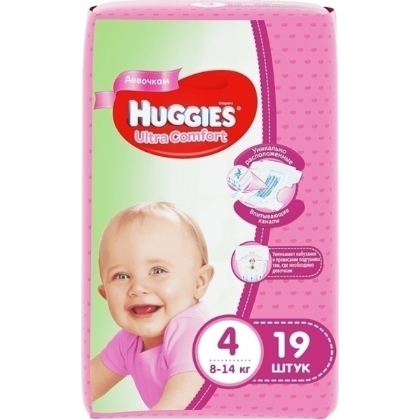Подгузники для девочек Huggies Ultra Comfort 4, 8-14 кг, 19 штук