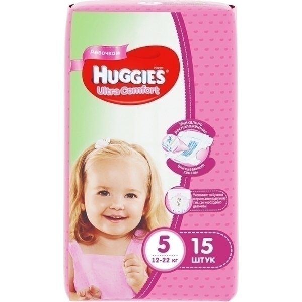 Подгузники для девочек Huggies Ultra Comfort 5, 12-22 кг, 15 штук
