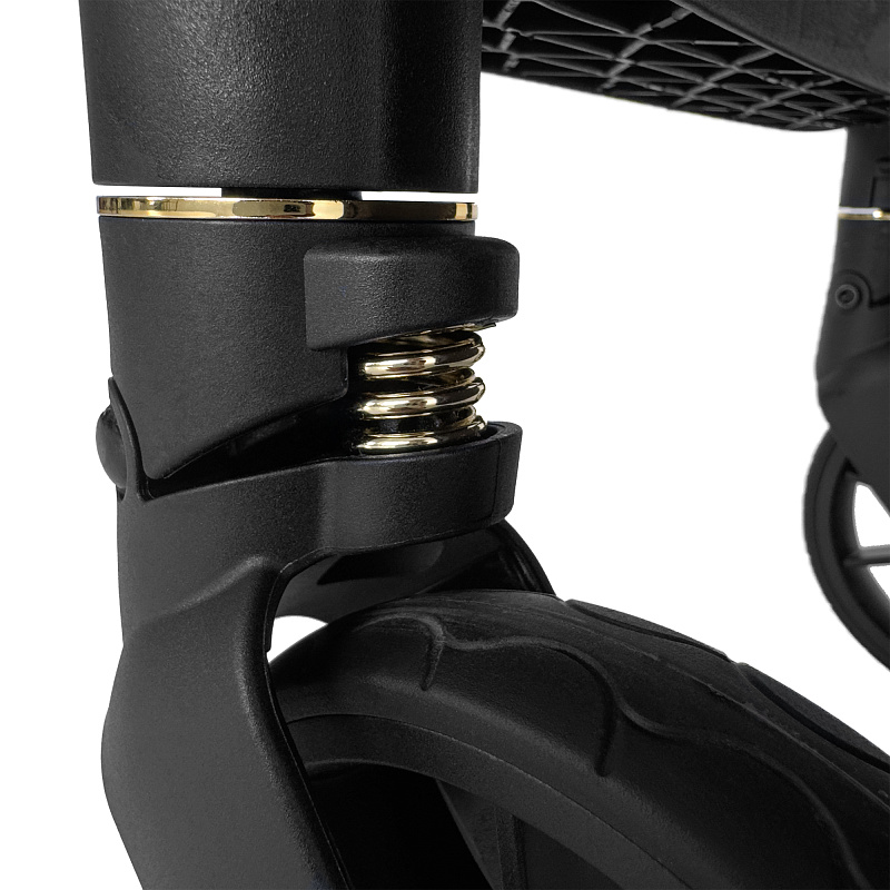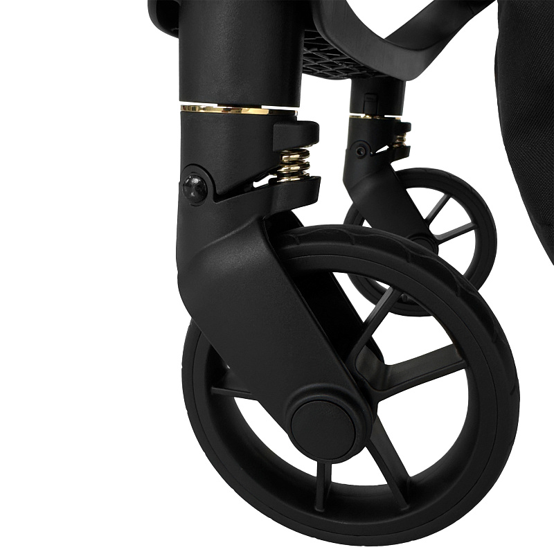 Коляска выдерживает большой вес, но сама при этом весит всего 7 кг. Шасси крепкое и надежное, колеса маневренные, резиновые, усилены амортизаторами. Вы можете спокойно гулять по любой дороге, не беспокоясь о комфорте юного пассажира. Ход коляски мягкий, плавный, тихий. Передние колеса благодаря своей маневренности легки в управлении.