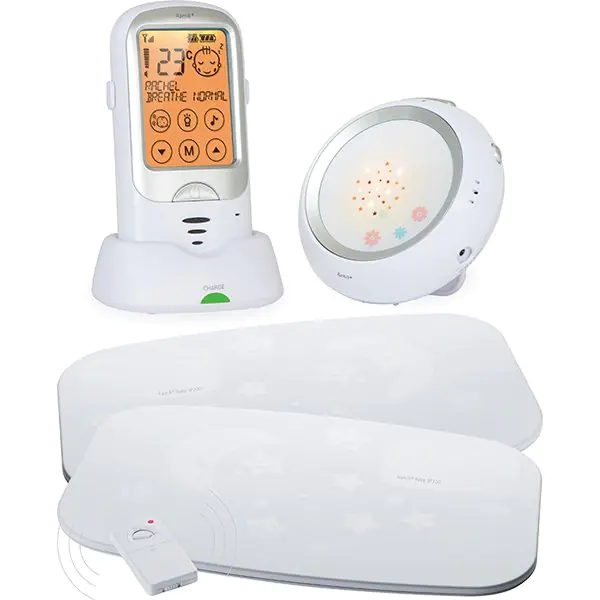 • беспроводной монитор дыхания Ramili SP200&SP100 – при необычном ритме дыхания у ребенка или его отсутствии от 20 секунд и более на родительский блок издает тревожный сигнал