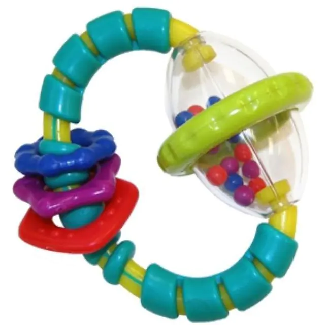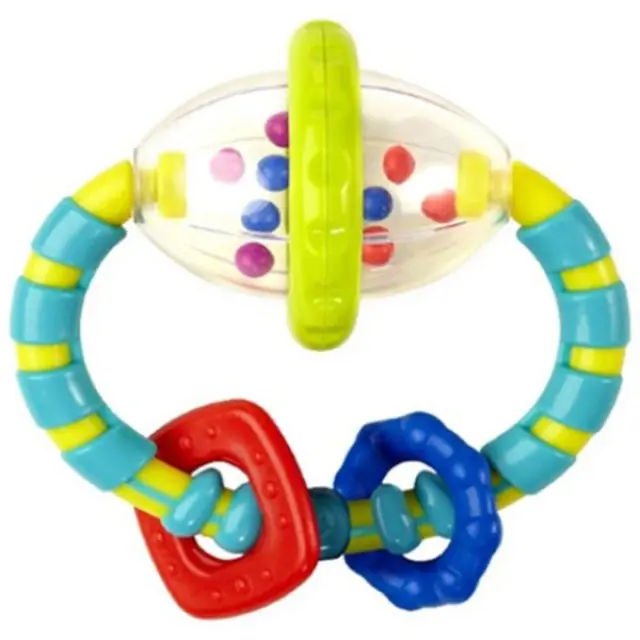 Разноцветные вращающиеся погремушки хорошо развивают мелкую моторику и тактильные ощущения. Во время прорезывания первых зубов в развивающей игрушке Bright Starts (Брайт Стартс) Хватай и Вращай 8533 помогут малютке рельефные прорезыватели. Маленькие бусинки можно перебирать пальчиками, а погремушку трясти, получая радость от забавных звуков. Купить развивающую игрушку Bright Starts (Брайт Стартс) Хватай и Вращай за разумную цену легко в интернет-магазине koliaski-krovatki.ru. Изделие выполнено из сертифицированных гипоаллергенных материалов, безопасных для младенцев.