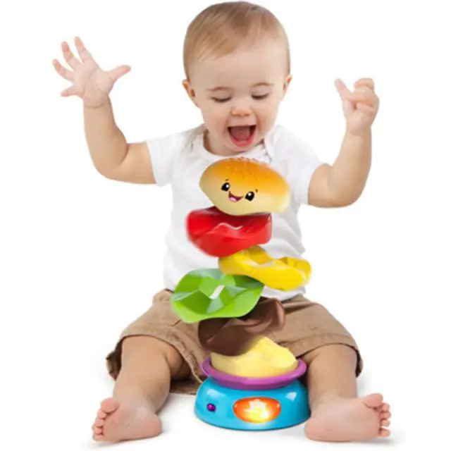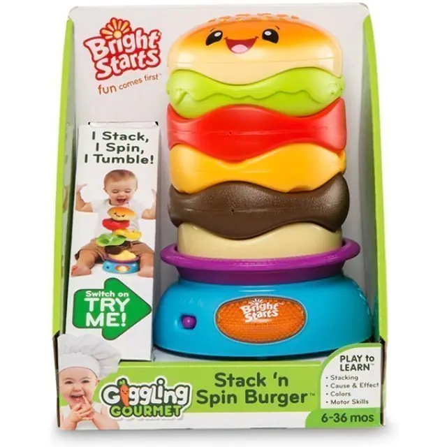 Крутится под веселую музыку – развивающая игрушка-пирамидка Bright Starts (Брайт Стартс) Веселый Бутерброд 52126