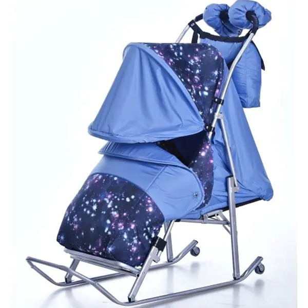 Эта модель повышенного комфорта оснащена удобным сиденьем с трехпозиционной спинкой, благодаря которой маленький путешественник сможет сладко вздремнуть во время зимнего путешествия. Санки коляска на колесиках Kristy Luxe Comfort оснащены варежками-муфтой, которые согреют руки родителей в морозную погоду.