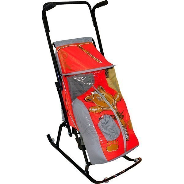 Зимний вид транспорта для детей – санки-коляска RT Снегурочка 4-Р (РТ) Медвежонок с 4 колесиками и светоотражающей обивкой