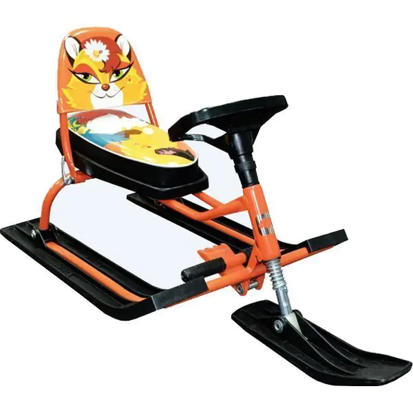 Эта быстрая и яркая модель позволяет прокатиться с ветерком на высокой скорости и получить максимум удовольствия. Специально разработанная форма руля обеспечивает легкое управление, а широкие пластмассовые лыжи гарантируют хорошую устойчивость на дороге. Пружинный амортизатор позволяет мчаться вниз с горки и не ощущать дискомфорта при попадании на кочки.