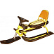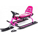 Данная модель имеет пружинный амортизатор на передней стойке, который позволяет детям и взрослым (поскольку он выдерживает вес до 100 кг) с легкостью преодолевать препятствия на своем пути. Места соединения лыж с задними опорами оснащены резиновыми вставками, которые также поглощают удары. Комфортное сиденье дополнено спинкой, она позволяет малышу кататься в удобном положении. При необходимости спинка быстро складывается и не мешает во время переноски изделия.
