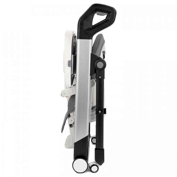 Стульчик для кормления достаточно компактен, экономит место на кухне или в другом помещении. Для удобства перемещения предусмотрено четыре колеса с мягким покрытием, не царапающим пол. Более того, колеса априори заблокированы. Блокировку можно снять, если нажать на рычаги, встроенные ручки, что может сделать только взрослый.