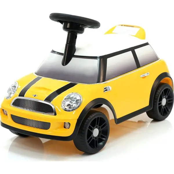 Дизайн толокара стилизован под мини-купер и выглядит совсем как настоящий автомобиль.