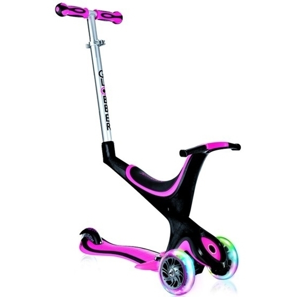 Уникальное транспортное средство выполняет разные функции в зависимости от возраста ребенка. Самые маленькие детки будут кататься на нем, как на каталке. Для этого в нем предусмотрено съемное сиденье, руль и родительская ручка управления. Дети старше 2 лет смогут использовать трехколесный самокат Globber Evo 5 в 1 по прямому назначению. Для этого достаточно убрать сиденье.