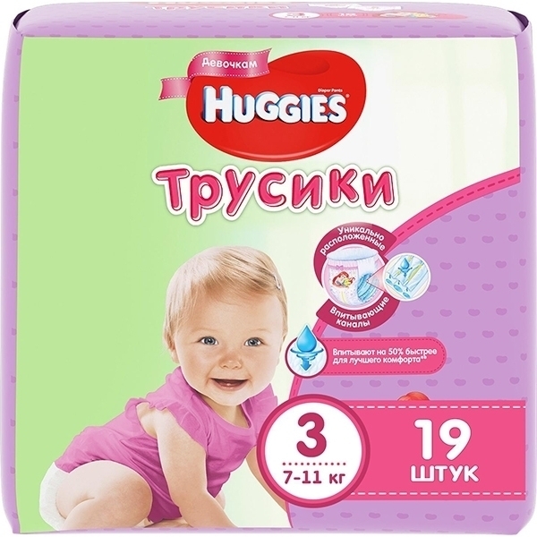 Уникальная технология быстрого впитывания — трусики / подгузники для девочек Huggies 3 (Хаггис)