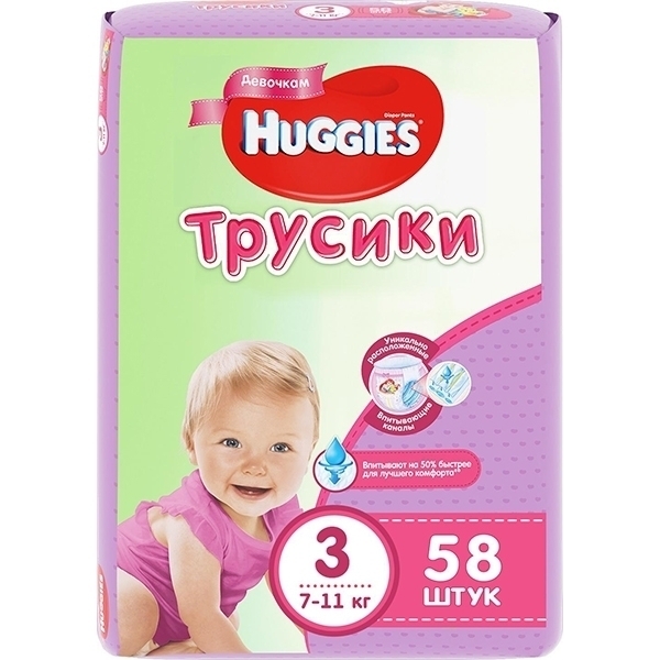 Эластичные подгузники-трусики Хаггис легко снимаются и надеваются, не стесняют движений, подходят для длительного использования. Впитывающие каналы внутреннего слоя расположены по центру с учетом физиологии и анатомии девочек.